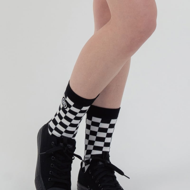 DOYOUKNOWMC Всесезонные носки с жаккардовым логотипом и интарсией в клетку гингем, черные