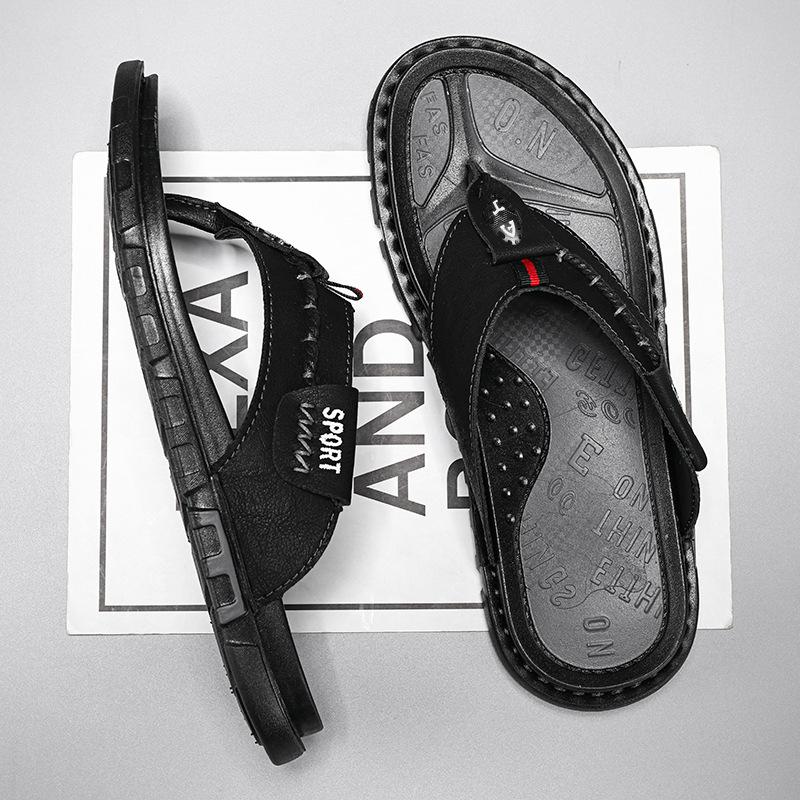 Мужские шлепанцы большого размера, модные, из первого слоя коровьей кожи, для улицы, дышащие, дезодорирующие, для ног, пляжные, крутые шлепанцы, мягкая подошва, нескользящие — купить товар онлайн с бесплатной доставкой по всему миру!