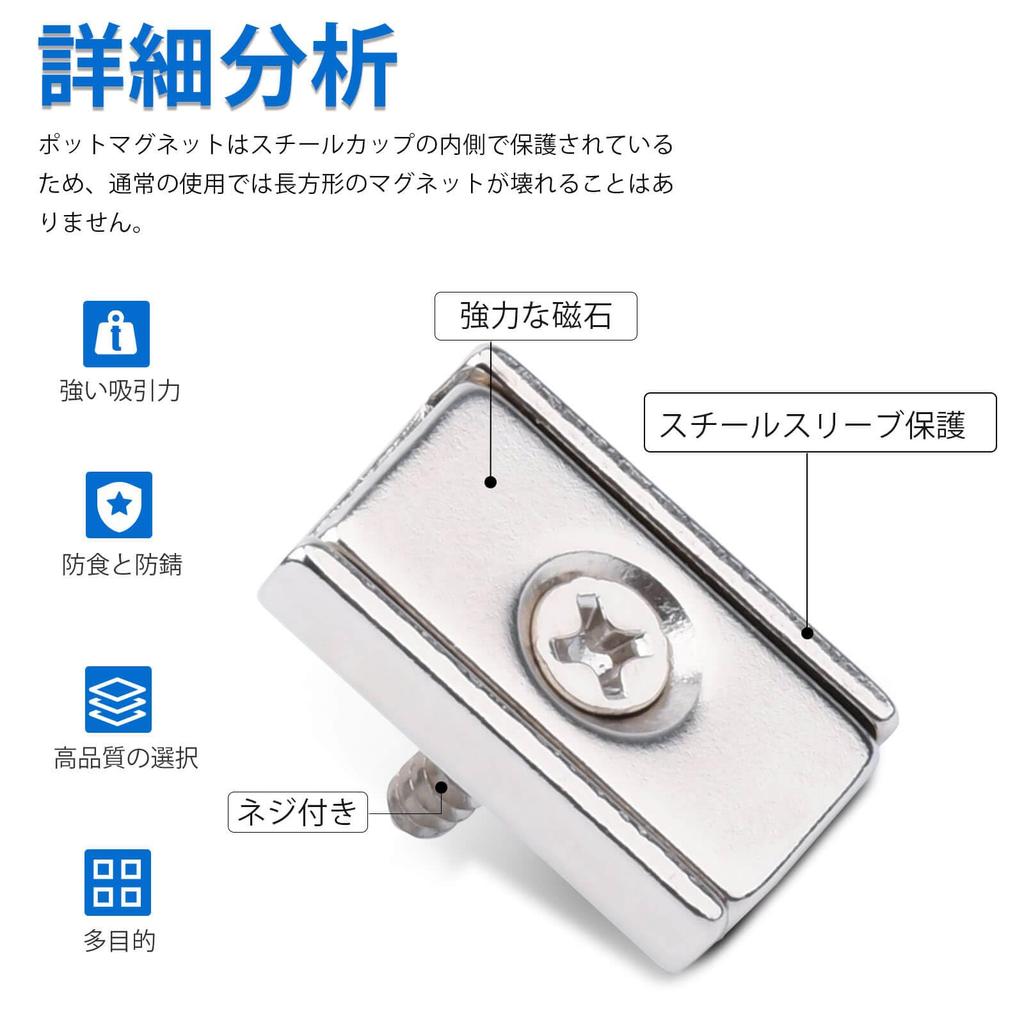 [Wide Range of Applications] This powerful magnet can be used in gyms, bathrooms, refrigerators, wall-mounted appliances, grills, lockers, industrial applications, warehouses, etc. Tip: The magnetic force of this magnet is concentrated on one side, while the other three sides are mostly non-magnetic. All three sides are surrounded by iron shells, which primarily serve as anti-collision protection for the magnet.