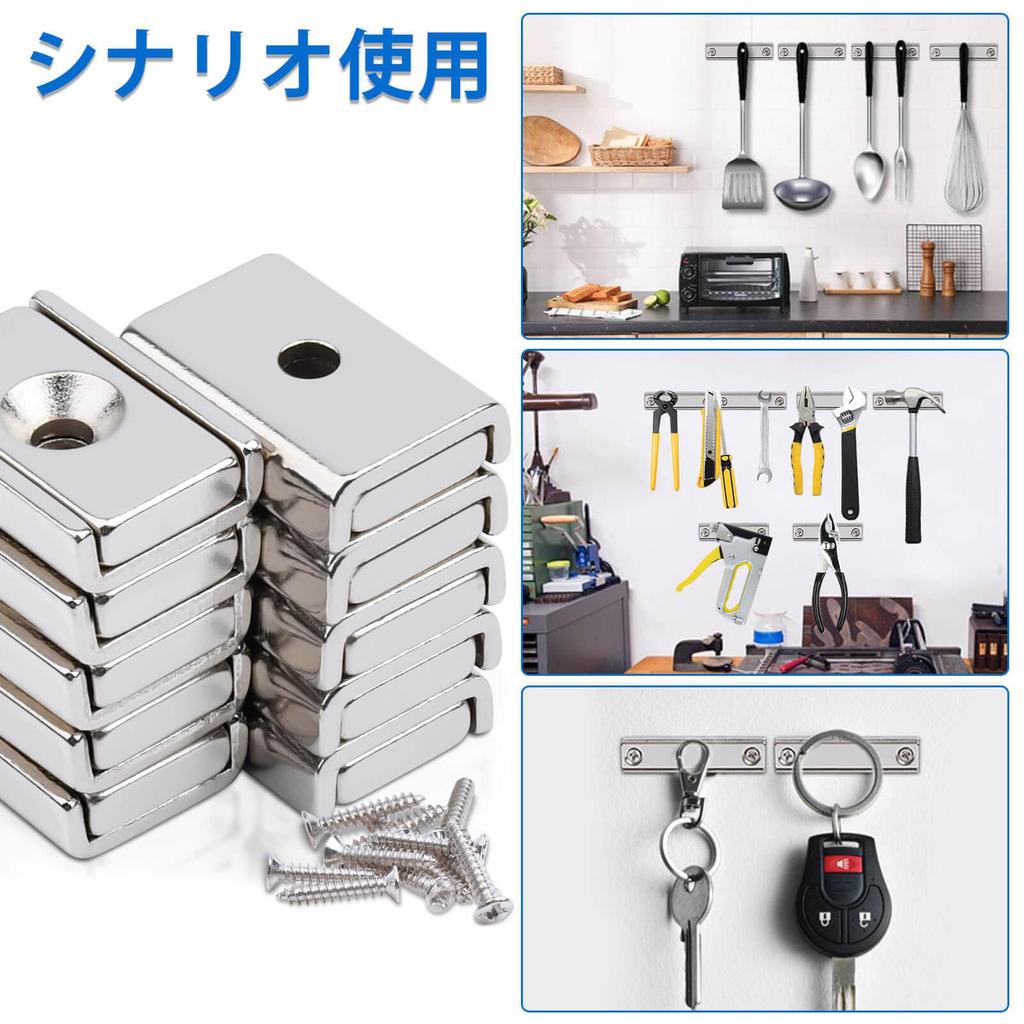 Super Strong Magnets: Rectangular Magnets with Holes, Screw Mounting, Axial Magnetization, Dimensions: 20x13.5x5mm, Hole Diameter: 3.5mm, 10 Magnets, 10 Screws
