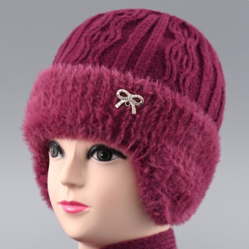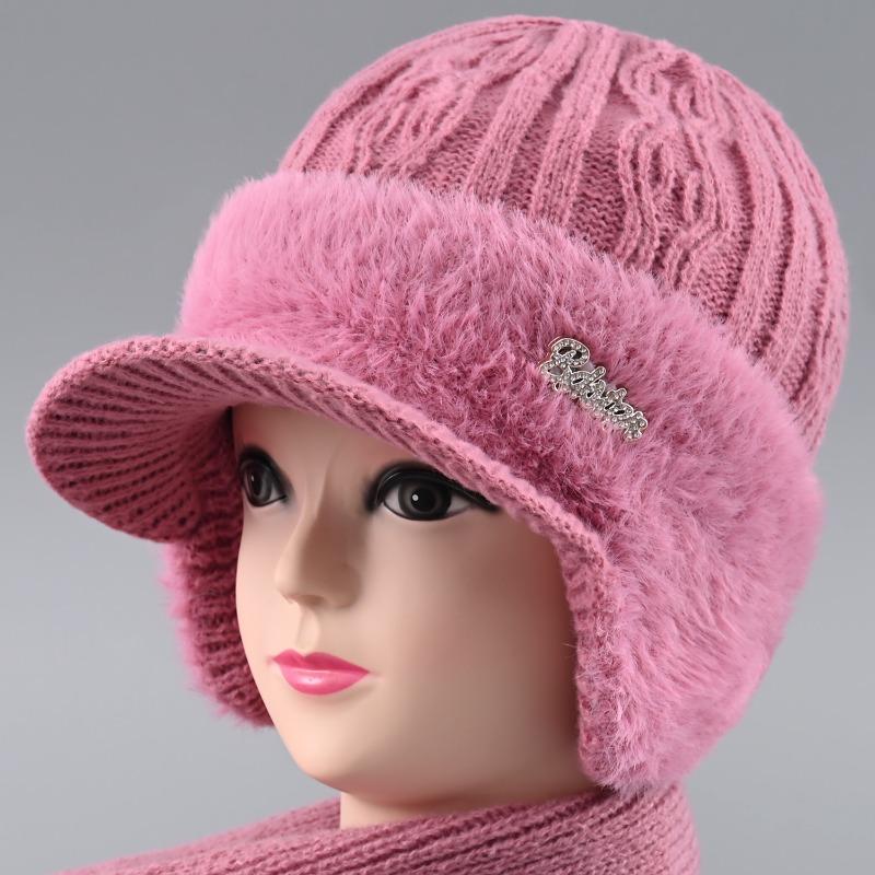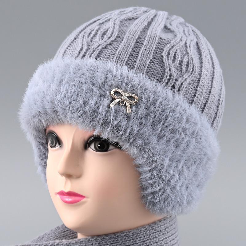 Шапка кроличий мех защита ушей теплая осенне-зимняя вязаная шапка ветрозащитная бархатная женская холодостойкая шерстяная шапка