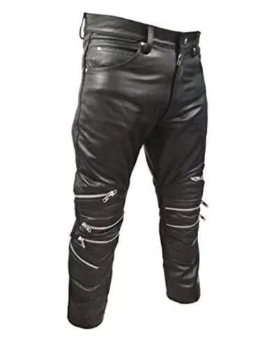 Кожаные Ручной работы Стильные Повседневные Черные Мужские Кожаные Брюки Натуральная Чистая Овчина