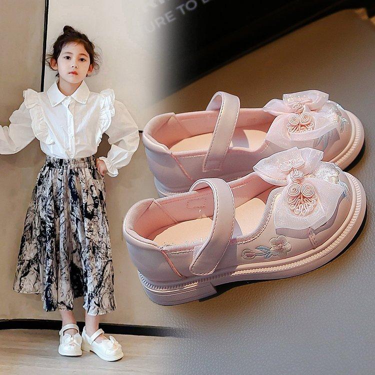Туфли принцессы для девочек 2025 весна новая детская обувь в национальном стиле вышитые туфли для ханьфу весенне-осенние туфли для девочек маленькие кожаные туфли