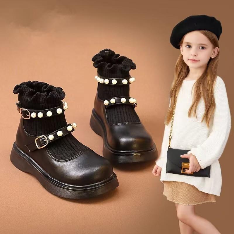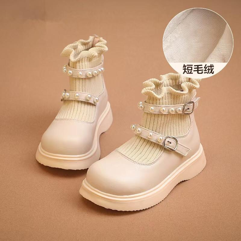 Девочки носки ботинки 2025 осень и зима новые ботинки детские носки ботинки дети одинарные ботинки девочки флисовые короткие ботинки ботинки Мартин
