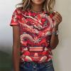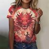 Женские футболки с круглым вырезом и 3D-принтом дракона - Модная повседневная одежда с коротким рукавом - Мягкая полиэстеровая ткань средней эластичности, летняя одежда свободного кроя