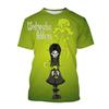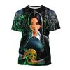 Женские футболки с коротким рукавом и повседневным кроем с 3D-принтом персонажа Уэнсдей Мерлины - Мягкая полиэстеровая ткань средней эластичности, летняя одежда свободного кроя