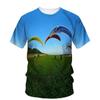 3D Parachute Paraglider Printed Casual Short Sleeved Children's Boy T-shirts - Soft Medium Stretch Fabric Spring and Autumn Relaxed Fit Clothing