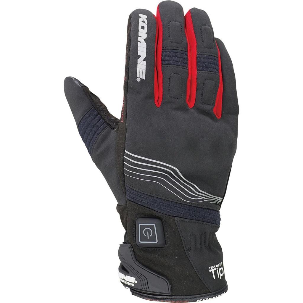 KOMINE Protect Electric Gloves Short 12V Motorcycle Size L Carbon Stretch Electric for and Spring Gloves, Black/Red, (EK-202 1129), Waterproof,