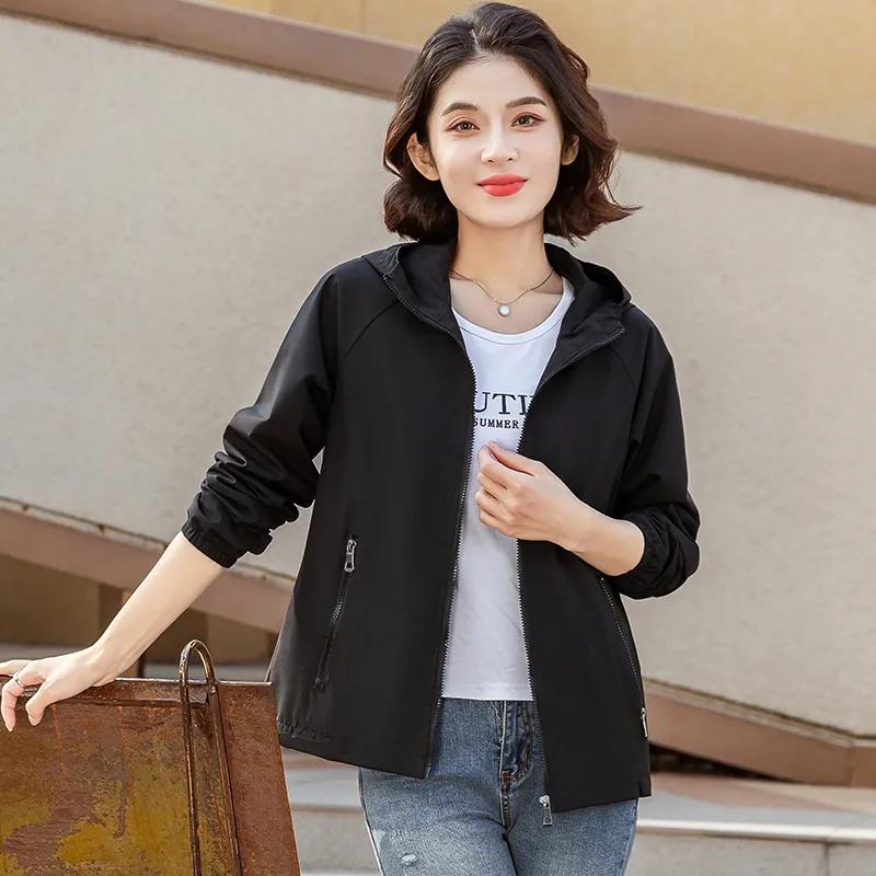 Ветровка Куртка Женская Весна Осень Пальто Женская Спортивная Досуг Верхняя Одежда Большого Размера С Капюшоном Верхняя Одежда Женские Топы