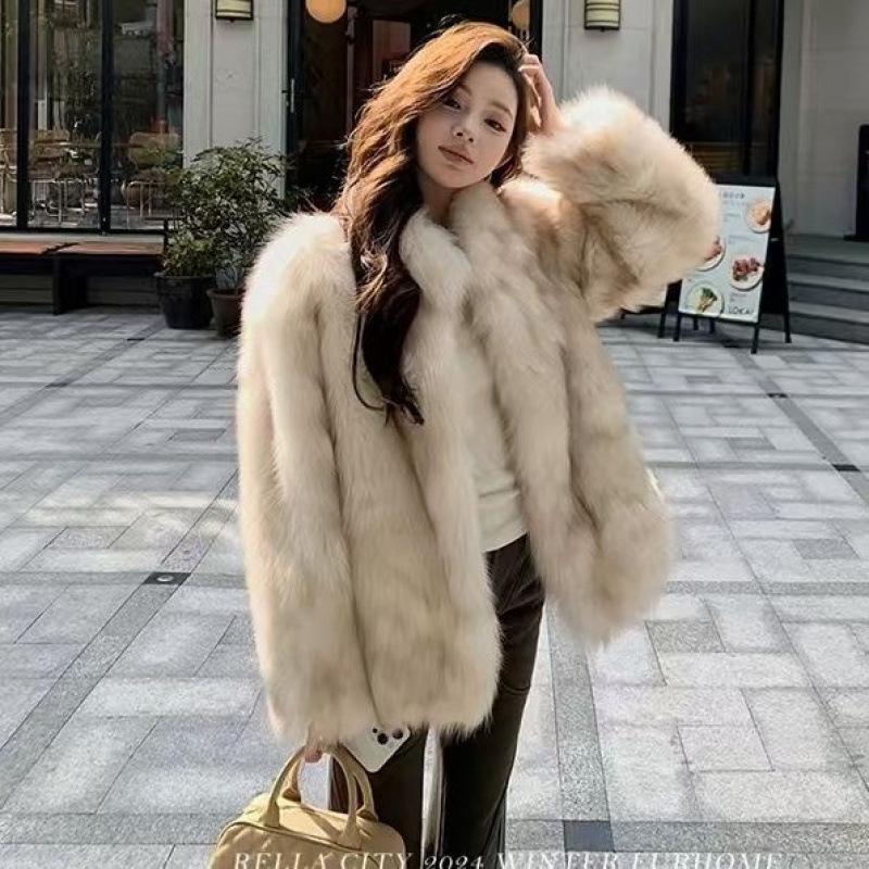 Новая женская зимняя шуба из искусственного лисьего меха с воротником-стойкой, визуально стройнящая, шуба из искусственного норкового меха в стиле знаменитостей