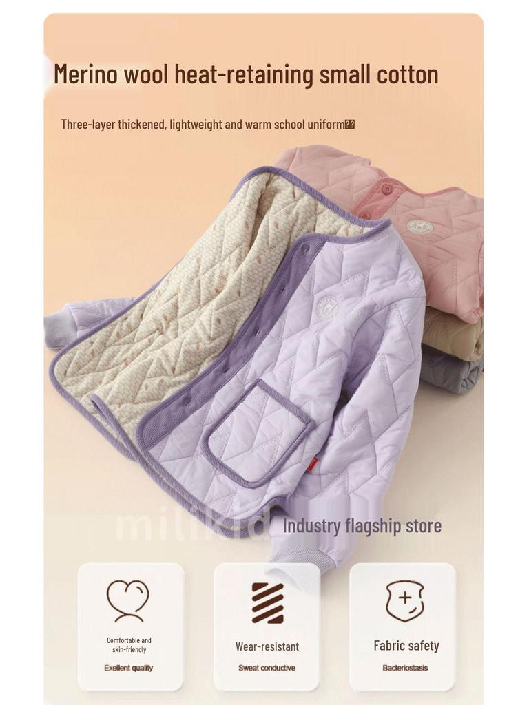 Эта зимняя куртка изготовлена из высококачественной шерсти, разработана специально для девочек младшего школьного возраста.. Он имеет теплый, толстый внутренний слой с хлопковой набивкой, обеспечивающий комфорт и изоляцию в холодные месяцы.. Куртка сочетает в себе функциональность и стиль, что делает ее идеальным выбором для школьной формы, обеспечивая детям тепло и ухоженный вид в течение всего зимнего сезона.
