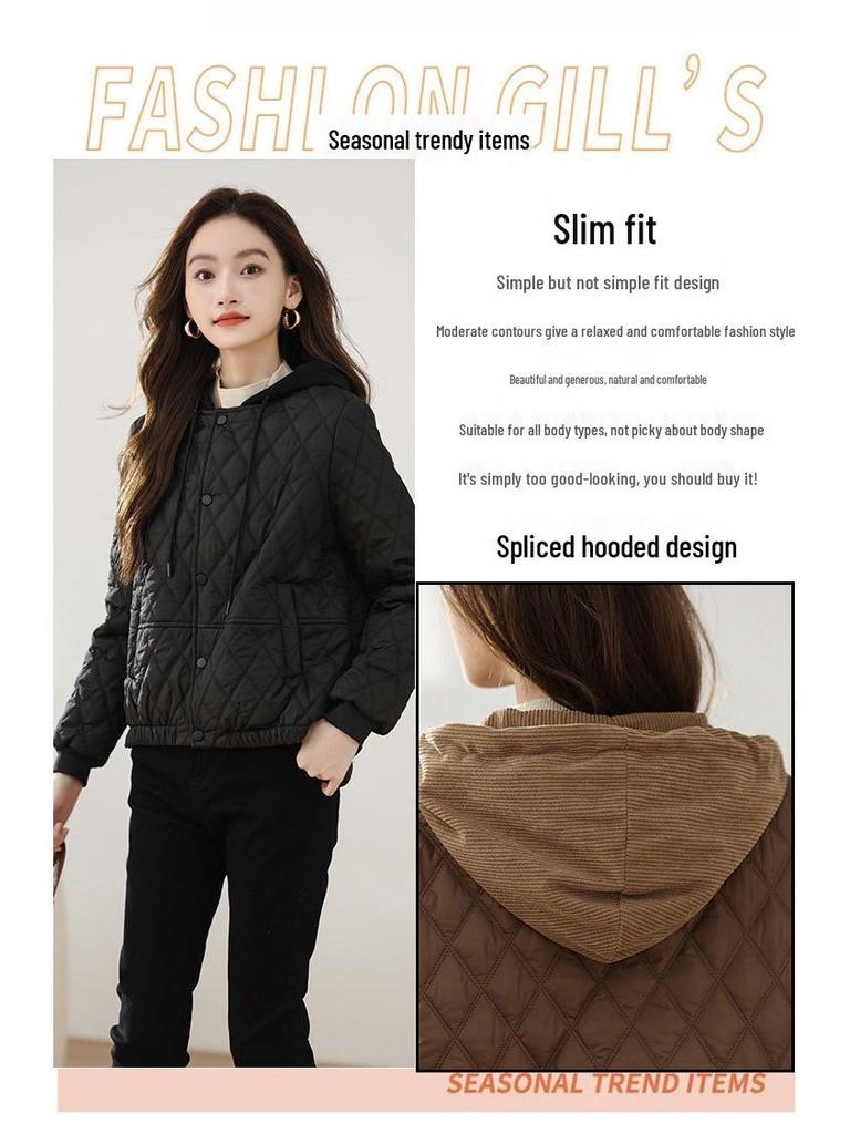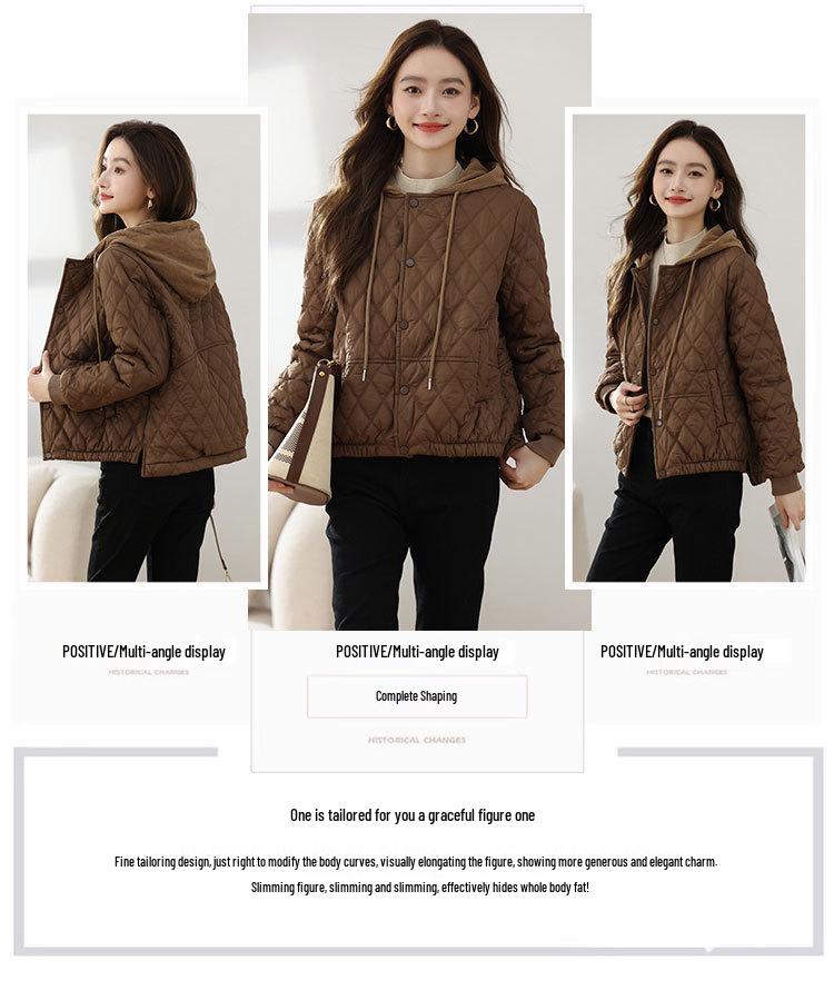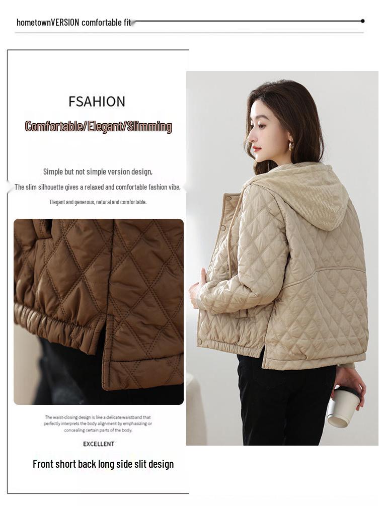 Зимняя куртка в стиле аргайл - Повседневная, Легкая, С капюшоном и Приталенная.