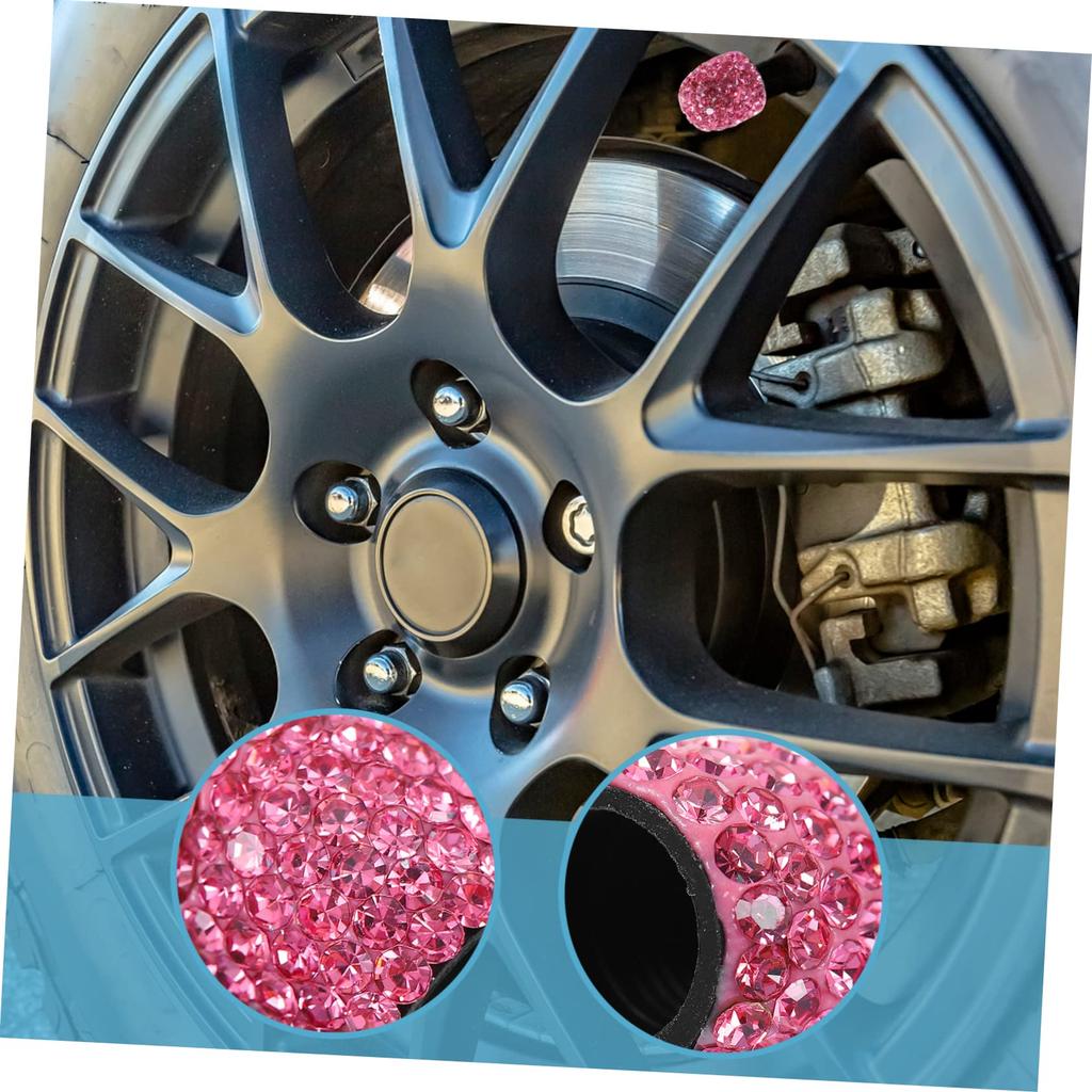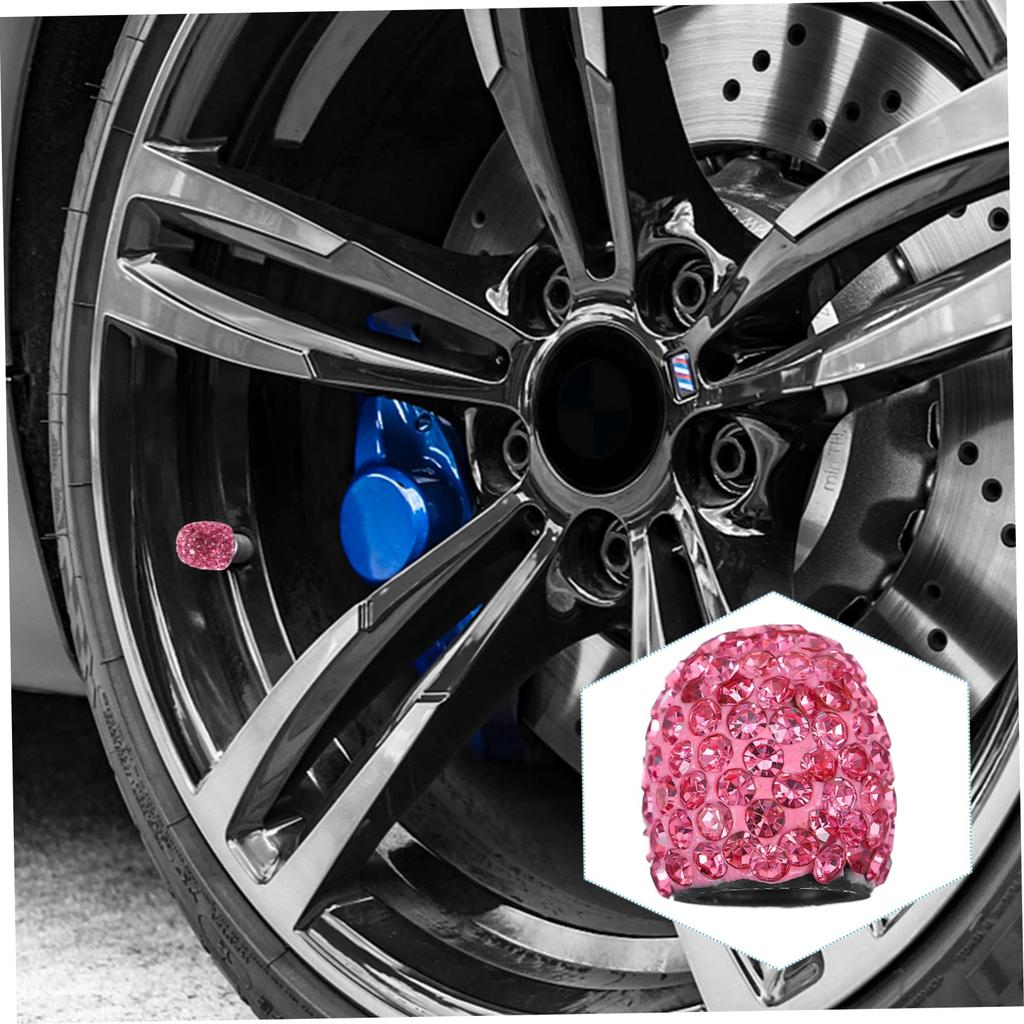 TINEASUR 4pcs Valve Caps Rhinestone Valve Stem Cover Steering Wheel Cover Tire Cap Car