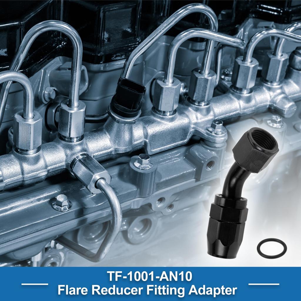 Адаптер для шланга-редуктора ABSOPRO с наружной резьбой AN10 45° для топливной линии с алюминиевым уплотнительным кольцом, черный