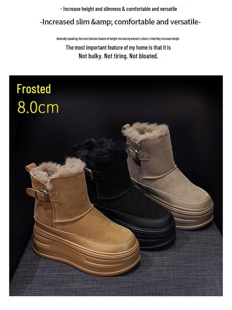 Женские зимние ботинки на толстой подошве 2025 года, увеличивающие рост, на бархатной подкладке, холодостойкие, повседневные теплые короткие ботинки.