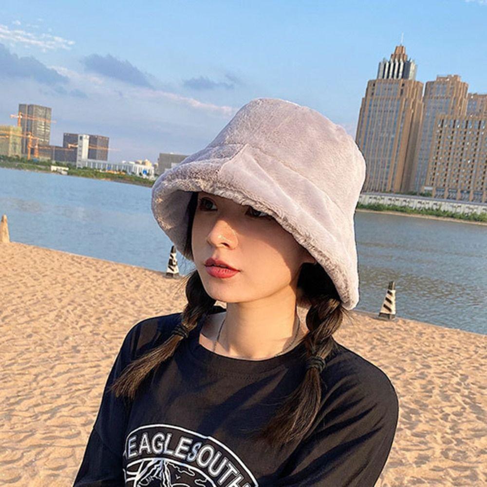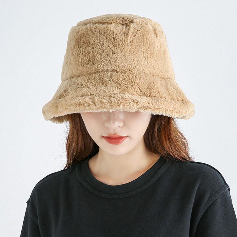 Женская плюшевая шапка из искусственного меха в корейском стиле, теплая шляпа-панама, шерстяная шляпа-ведро в стиле Харадзюку, для улицы