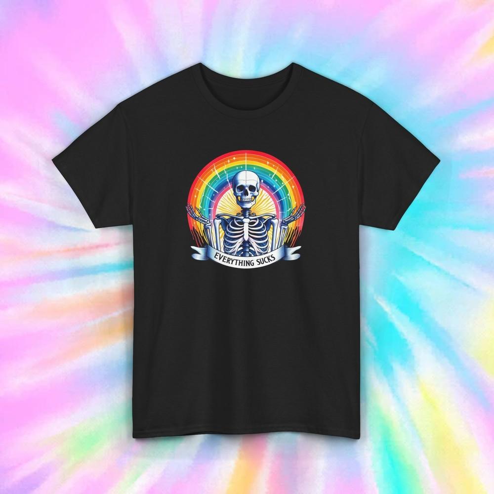 Все Отстойно Смешной Скелет Радуга Сарказм Юмор Футболка S-5XL
