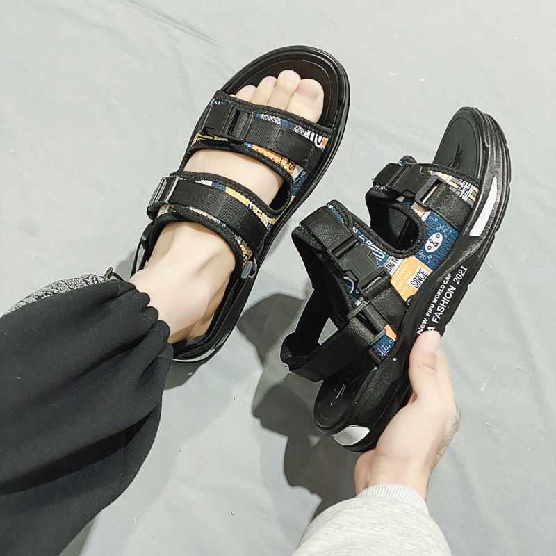 Мужские сандалии лето новые корейская версия тренд уличные пляжные крутые шлепанцы для ношения вне дома спортивные сандалии двойного назначения крутые шлепанцы