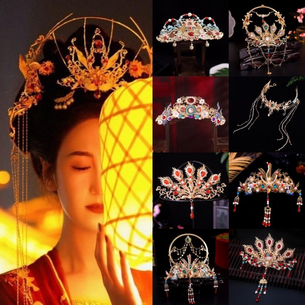 Кристальный держатель для волос династии Тан, цветная глазурь, кисточка, жемчужная корона, косплей