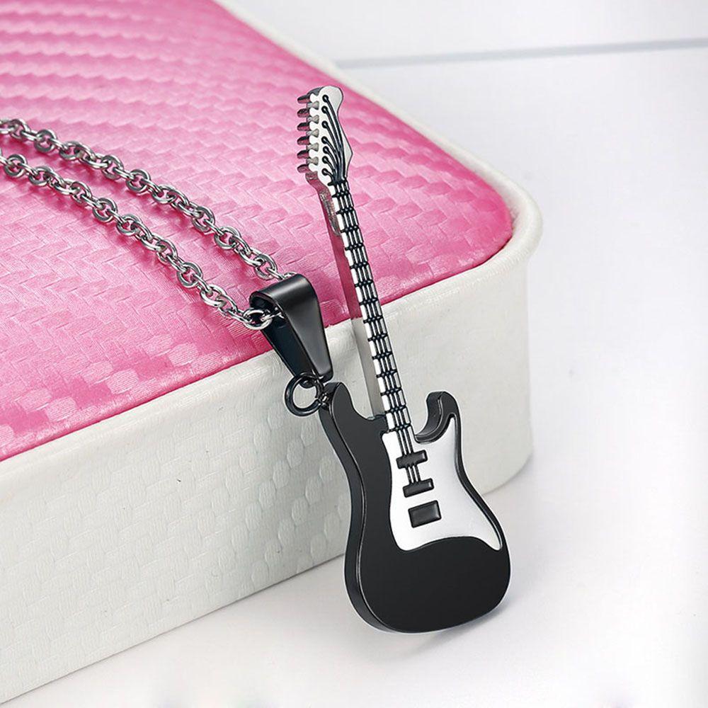 Jewelry Stainless Steel Music Guitar Necklace Pendant Chain