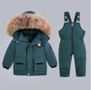 Детский комплект из 2 предметов: Зимняя пуховая куртка и комбинезон для малыша, Утепленная куртка для девочек, Пальто с теплым воротником из натурального меха, Мальчиковый сноусьют