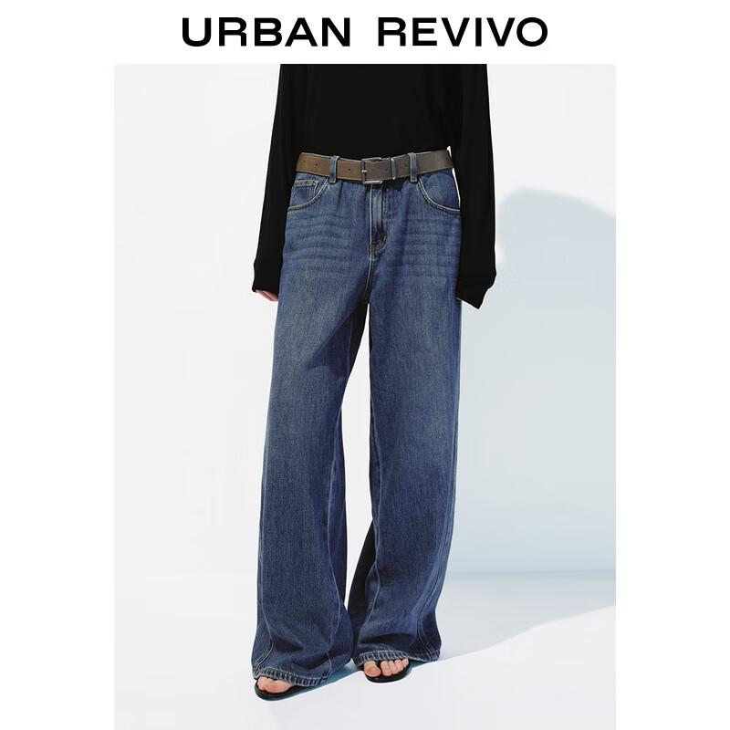 UR Women's Washed Wide-Leg Denim Pants with Belt