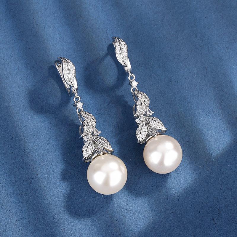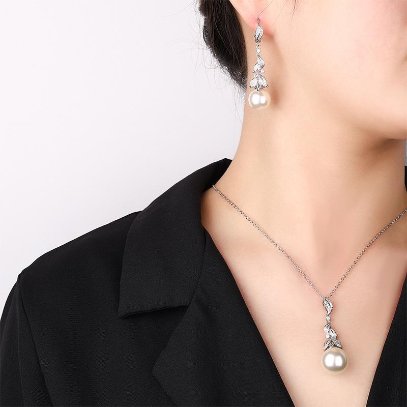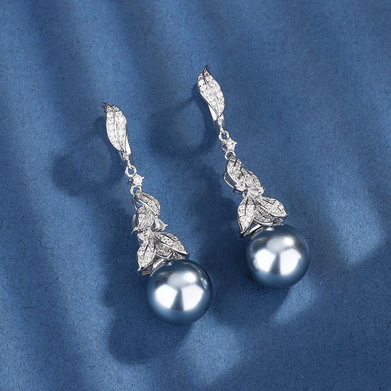 Ювелирные изделия Медь с золотым покрытием Инкрустированный жемчуг Темперамент Лист Набор Женский 16-14 мм