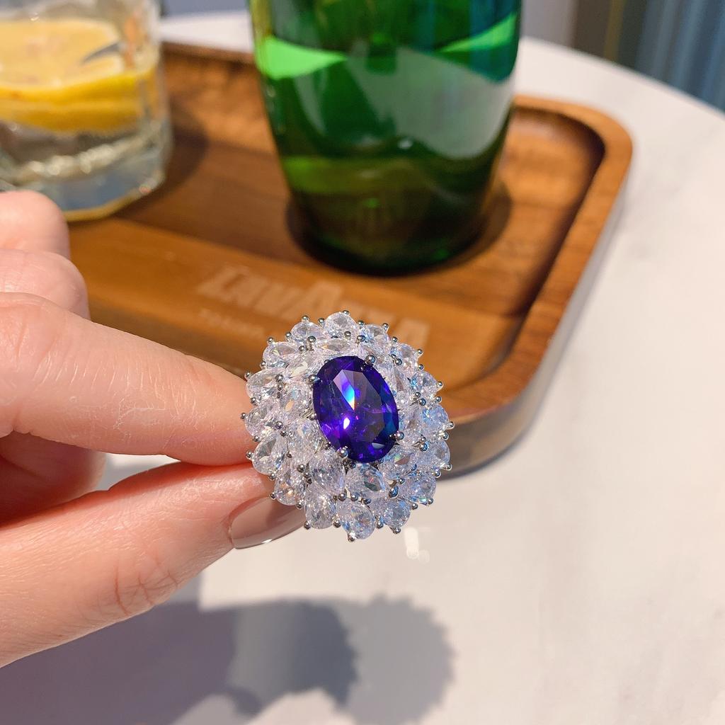 Набор украшений, Кулон с фиолетовым цирконием Кольцо 10 * 14 Серьги-пусеты 6 * 8 Набор из трех предметов