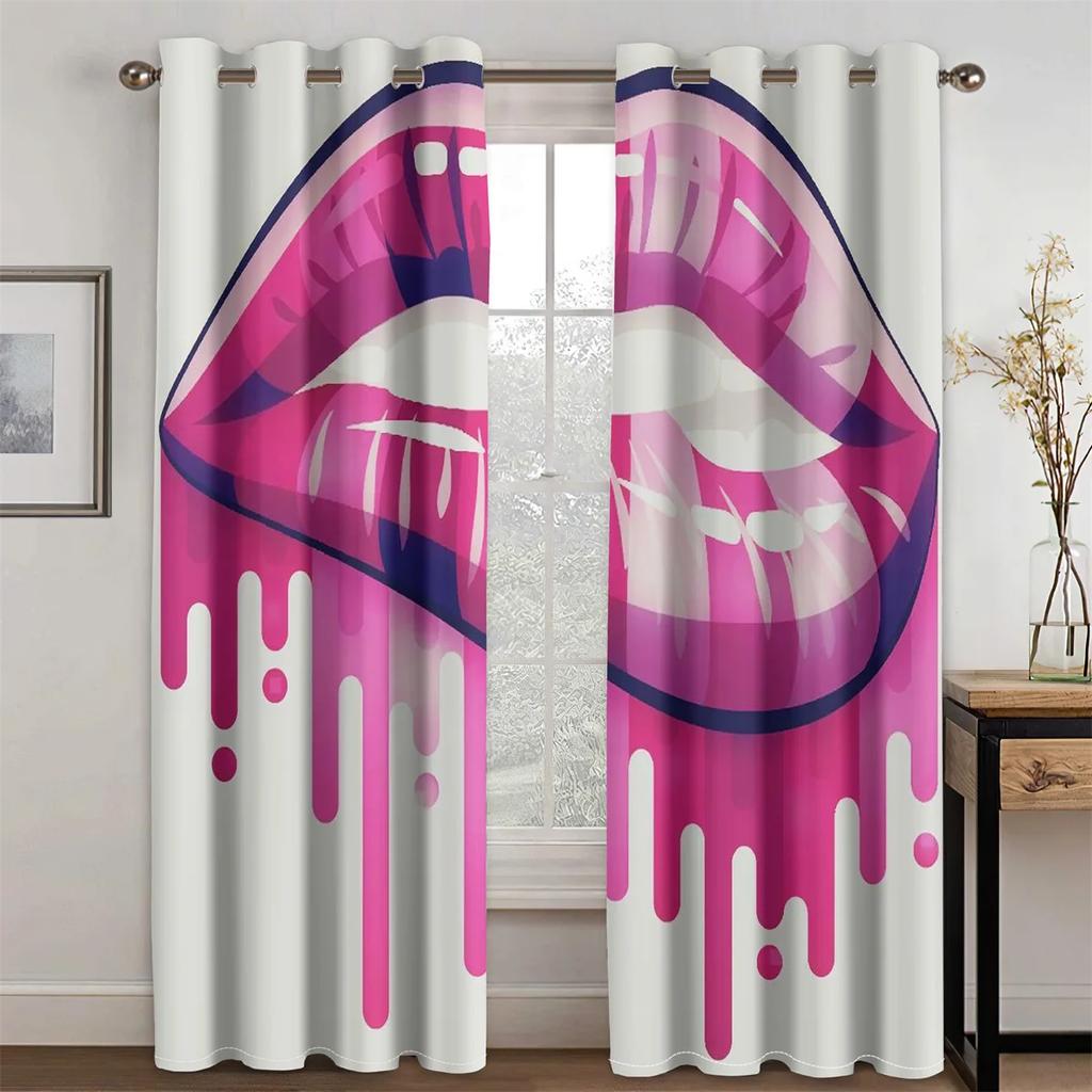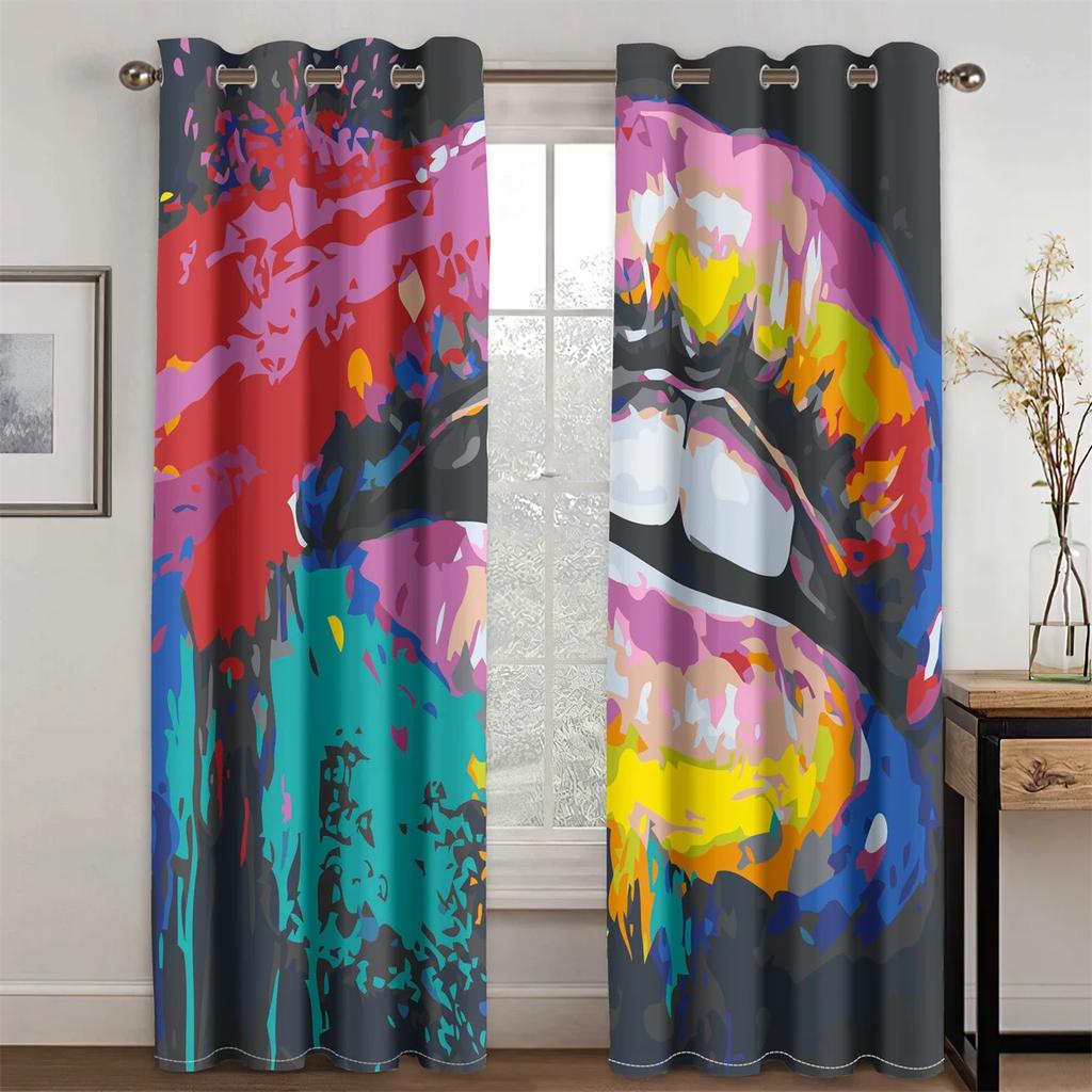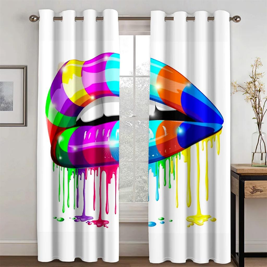 Сексуальные Радужные Абстрактное Искусство Рот Девушка Светофильтрующие Шторы, Оконные Шторы для Гостиной, Декор Спальни, 2 Шт.
