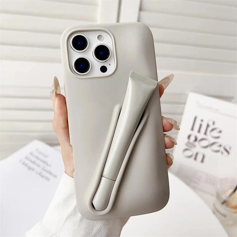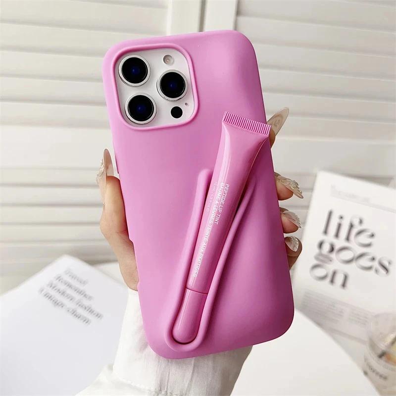 Портативный силиконовый чехол для телефона в виде блеска для губ для iPhone 17 11 12 13 14 15 16 Pro Max Plus с держателем для помады, мягкая обложка