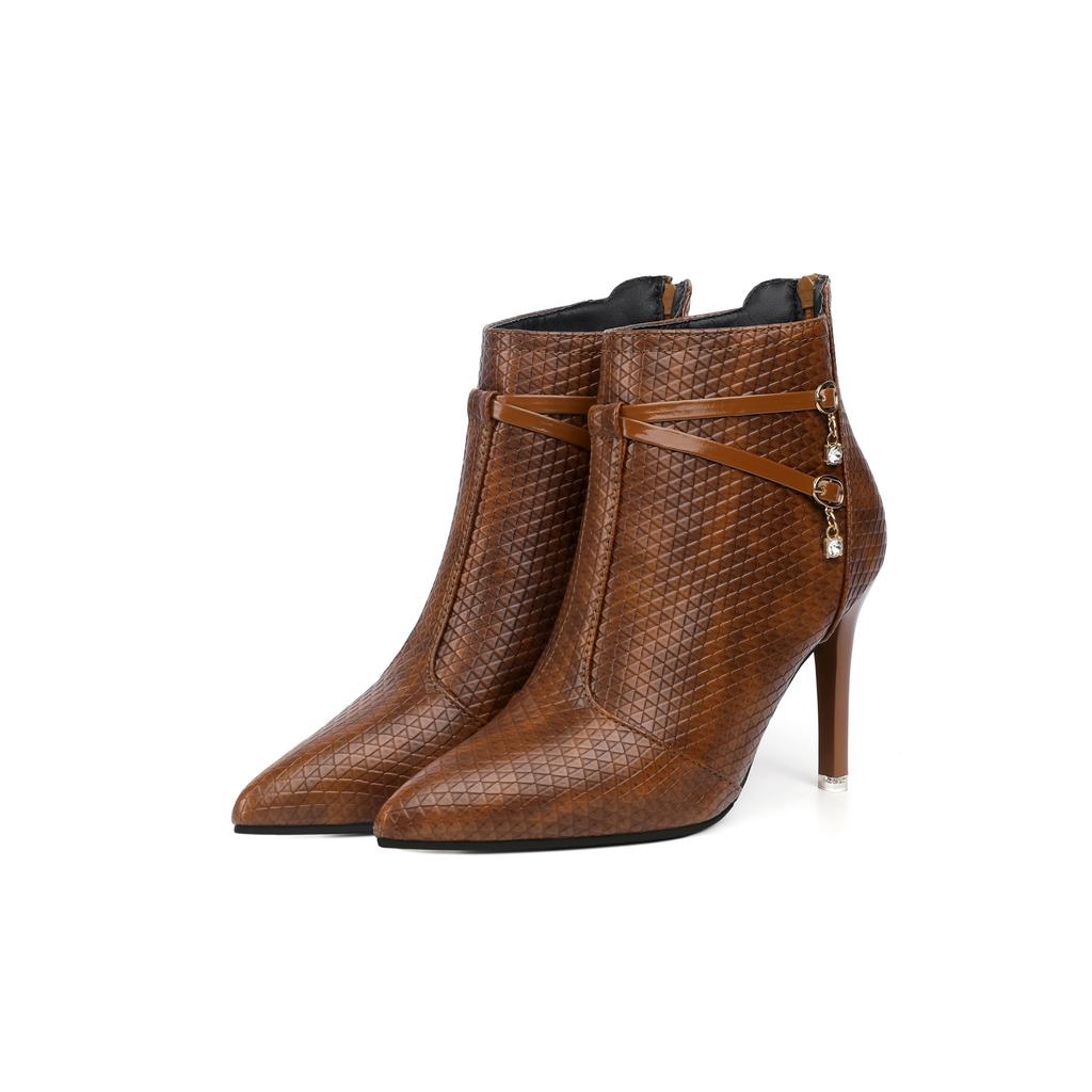 Внешняя торговля большой размер короткие ботинки женские весна 2025 новые острый носок шпилька задняя молния высокий каблук модные короткие ботинки