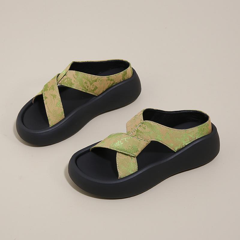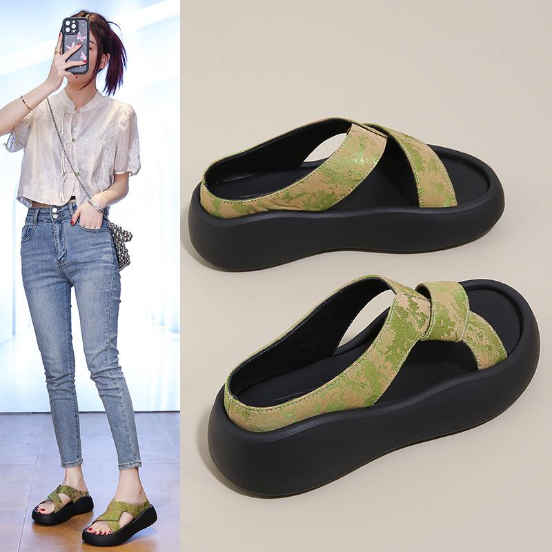 Маленькие крутые шлепанцы на толстой подошве, увеличивающие рост, женские летние 2025, новые туфли на высоком каблуке-маффине с юбкой, пляжные сандалии