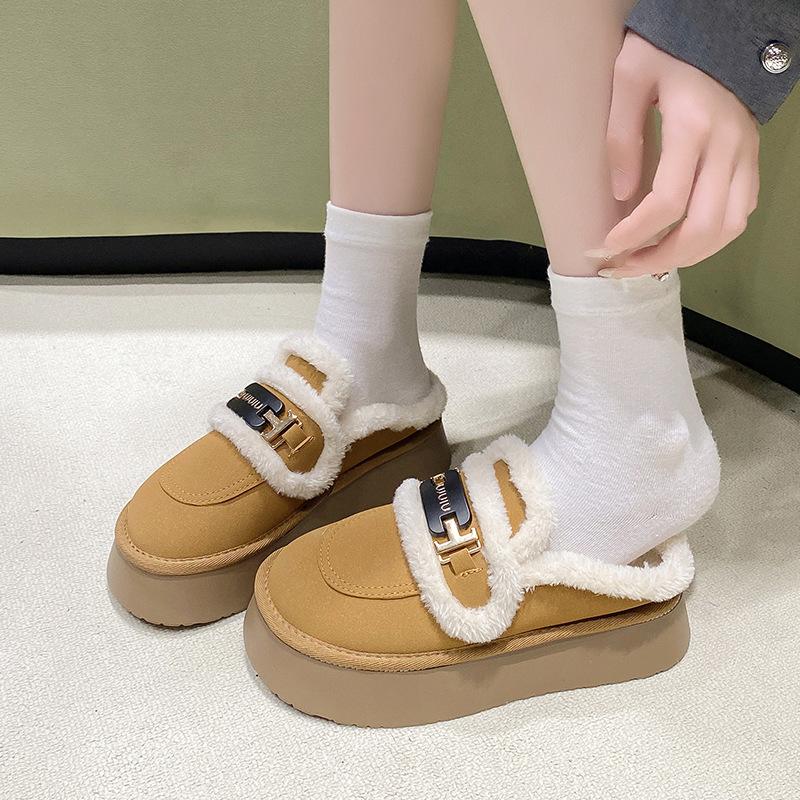 Бархатные полутапочки с толстой подошвой, женская уличная обувь, новинка зимы 2025 года, пушистые тапочки на одной педали, зимние сапоги, хлопковая обувь