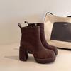 Замшевые короткие ботильоны на высоком каблуке в ретро-темпераментном стиле, осенне-зимние, корейская версия, французская мода, универсальные, на толстом каблуке, тонкие ботильоны, женские ботинки Мартин