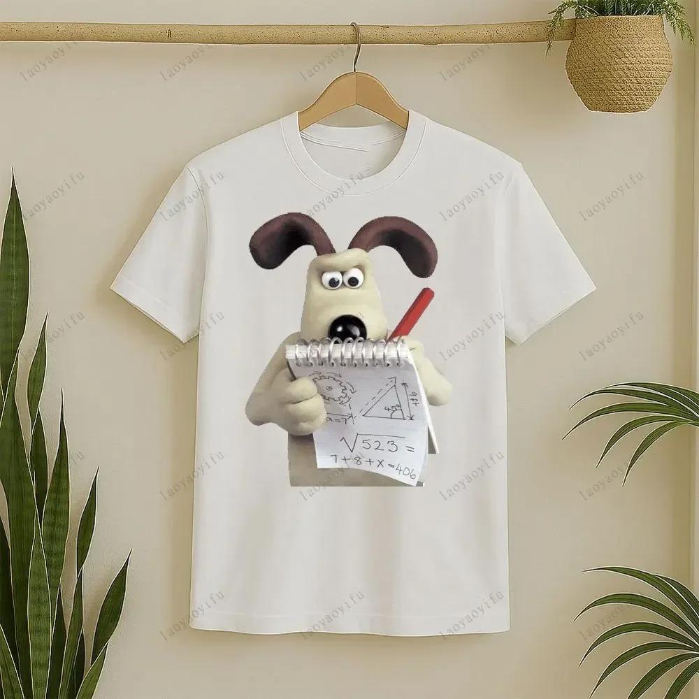 Принтованная футболка Уоллес и Громит Щенок делает жест сердца Мужская футболка Летняя с круглым вырезом Высокого качества С коротким рукавом