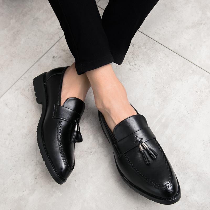 Мужские дышащие модные лоферы с кисточками из черной кожи, повседневная обувь слипоны, джентльменский стиль, для бизнеса, свадьбы, вечеринки, формальная кожаная обувь