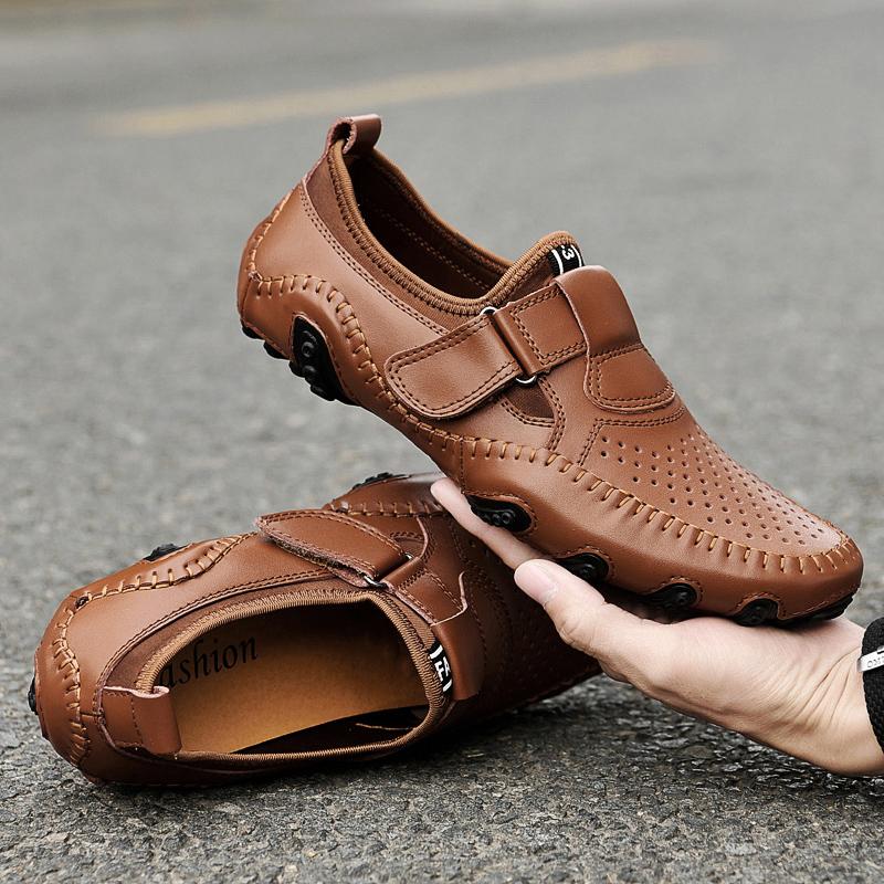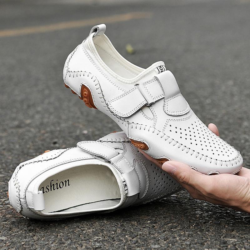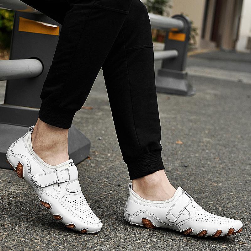 Летняя Новая Дышащая Обувь из Перфорированной Кожи Мужские Дизайнерские Лоферы Качественные Нескользящие Уличные Кроссовки Взрослые Мужские Туфли для Вождения
