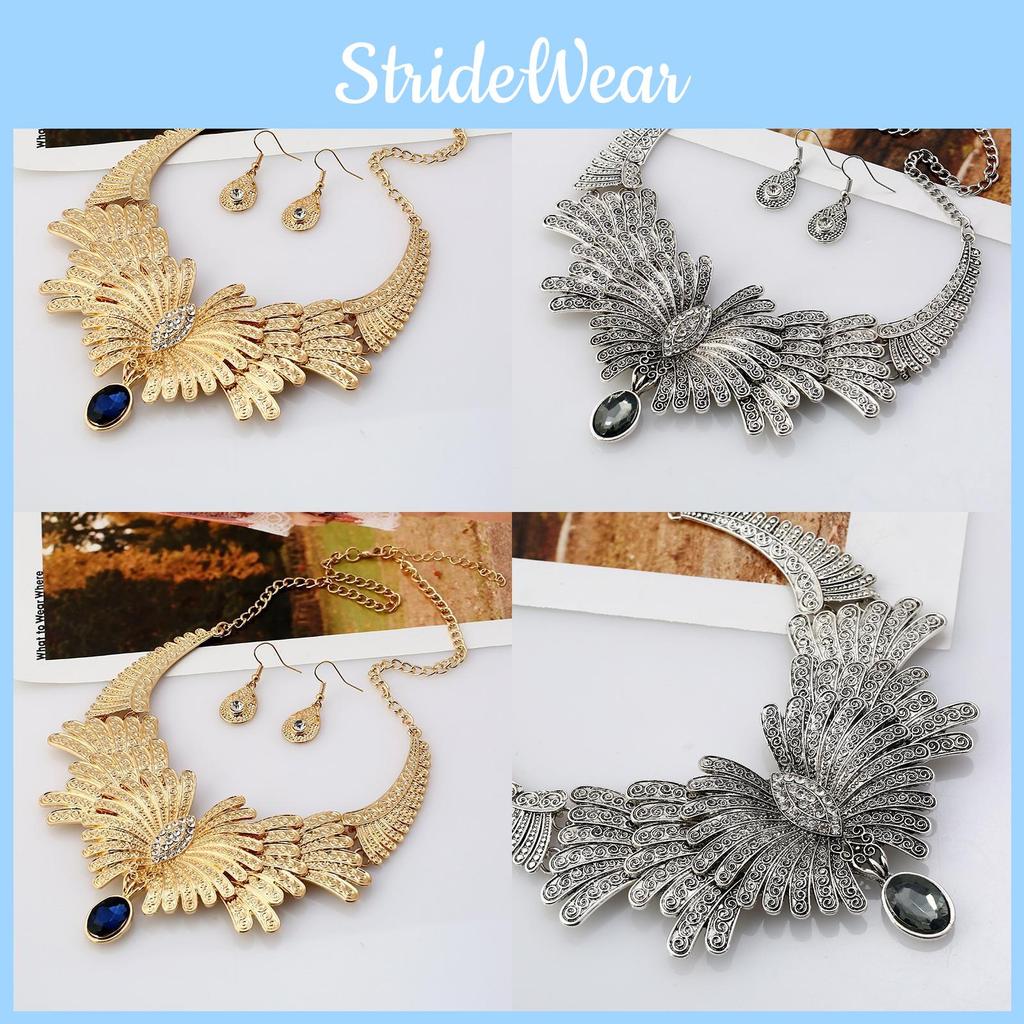 Винтажное ожерелье и серьги в виде крыльев с искусственным декоративным драгоценным камнем