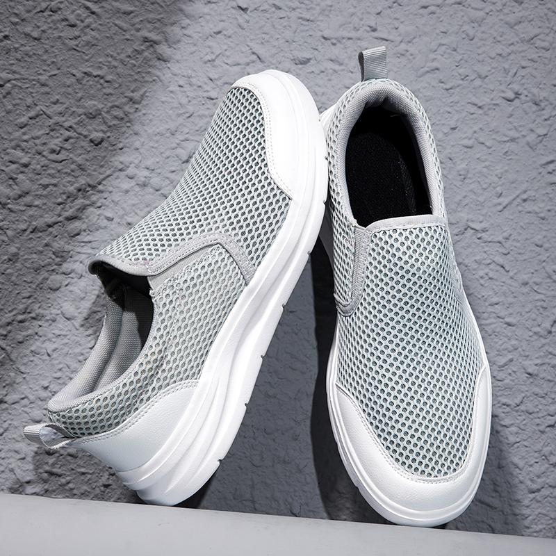 Летняя мужская удобная спортивная обувь слипоны однотонная дышащая сетка легкая толстая повседневная обувь легко надевать кроссовки