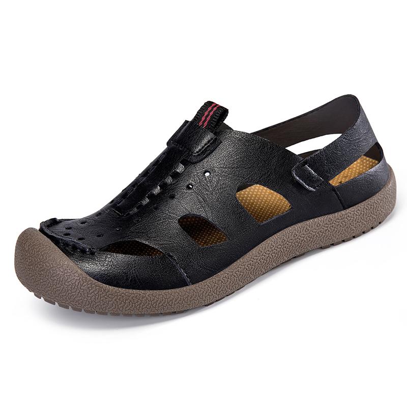 Летние мужские удобные повседневные сандалии из натуральной кожи, винтажная уличная мода, пляжная обувь, мягкая подошва, обувь для ходьбы