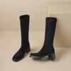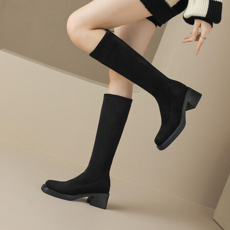 Корейская версия новых замшевых высоких сапог однотонные на задней молнии на среднем каблуке большого размера женские кожаные сапоги осень и зима круглый носок Мартин б