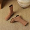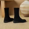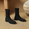 Осень и зима удобные замшевые эластичные полусапоги женские резиновая подошва квадратный каблук кожаные сапоги квадратный носок корейская версия новый knig