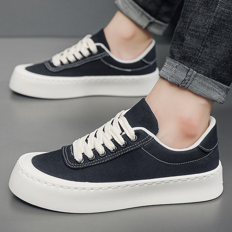 Мужские холщовые кроссовки на толстой подошве, низкие, дышащие, повседневные кеды, черные, спортивные, модные, для весны и осени, с круглым носком, резиновая подошва — купить товар онлайн с бесплатной доставкой по всему миру!
