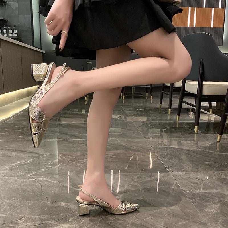 2025 Fashion Women Leather 3cm High Heels Lady Pointe Toe Gold Heels Sandals Female Wedding Bridal Shoes Women's High Heel Shoes