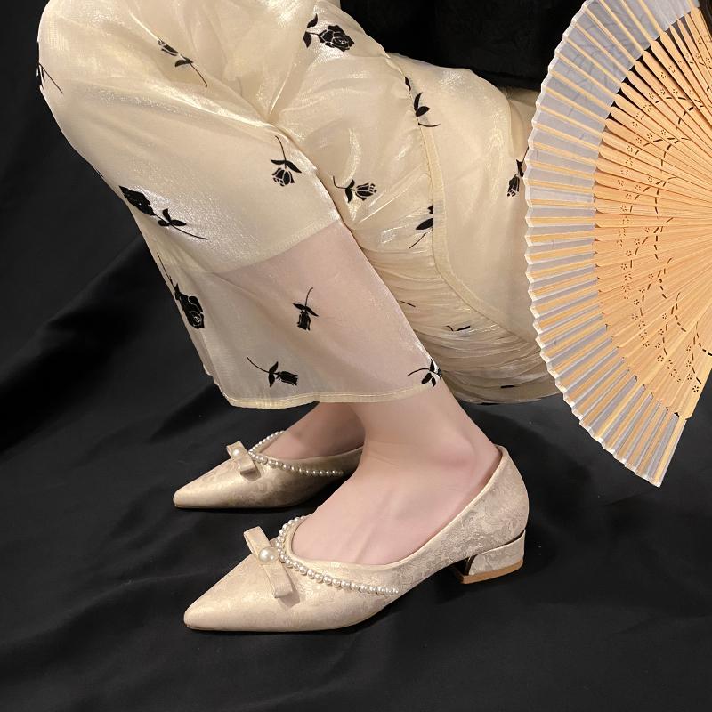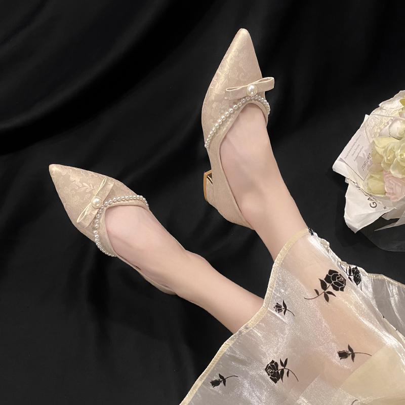Fashion Metal Crystal Splice Women Pumps Kitten Thick Heel Elegant Party Ladies Shoes Zapatos De Mujer