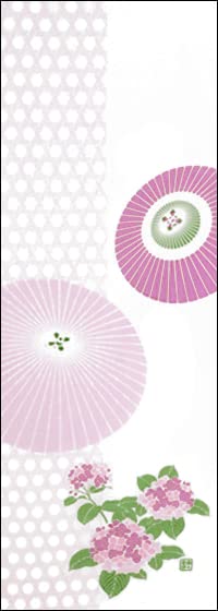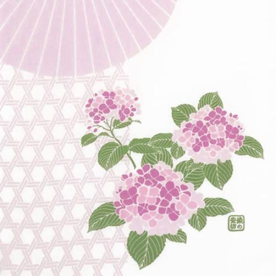 Традиционный узор Кагомэ расположен на фоне с изображением складного зонта и гортензий.. Красивая и элегантная цветовая гамма делает дождливые дни похожими на тихие, приятные дни. Насладитесь этим изысканным дизайном для сезона дождей в освежающих цветах.