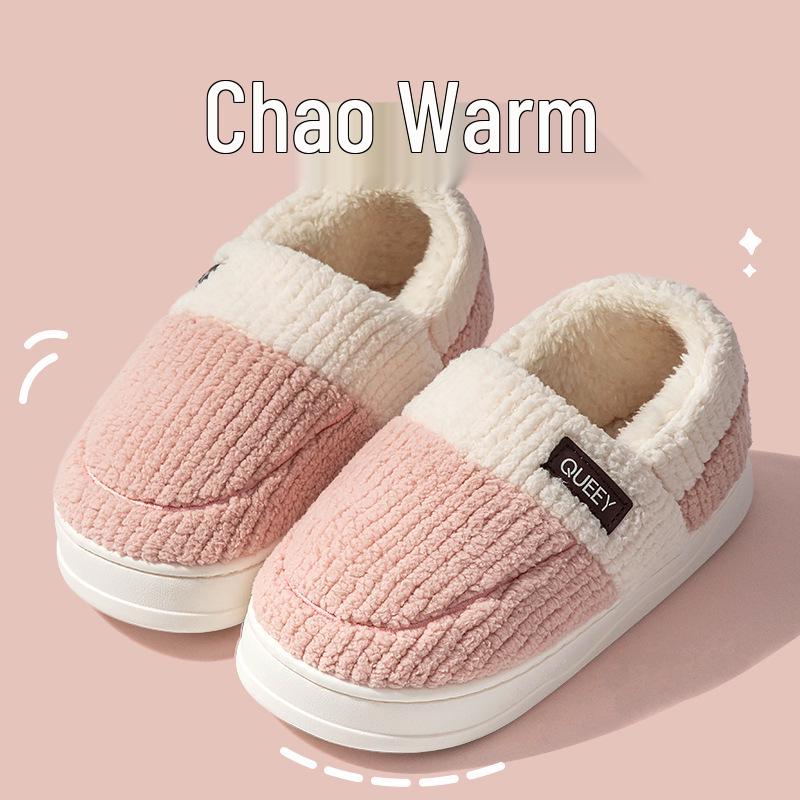 Женские зимние плюшевые хлопковые тапочки 2025: Закрытая пятка, Толстая мягкая подошва, Теплые послеродовые тапочки, Комфорт при надевании для него и для нее