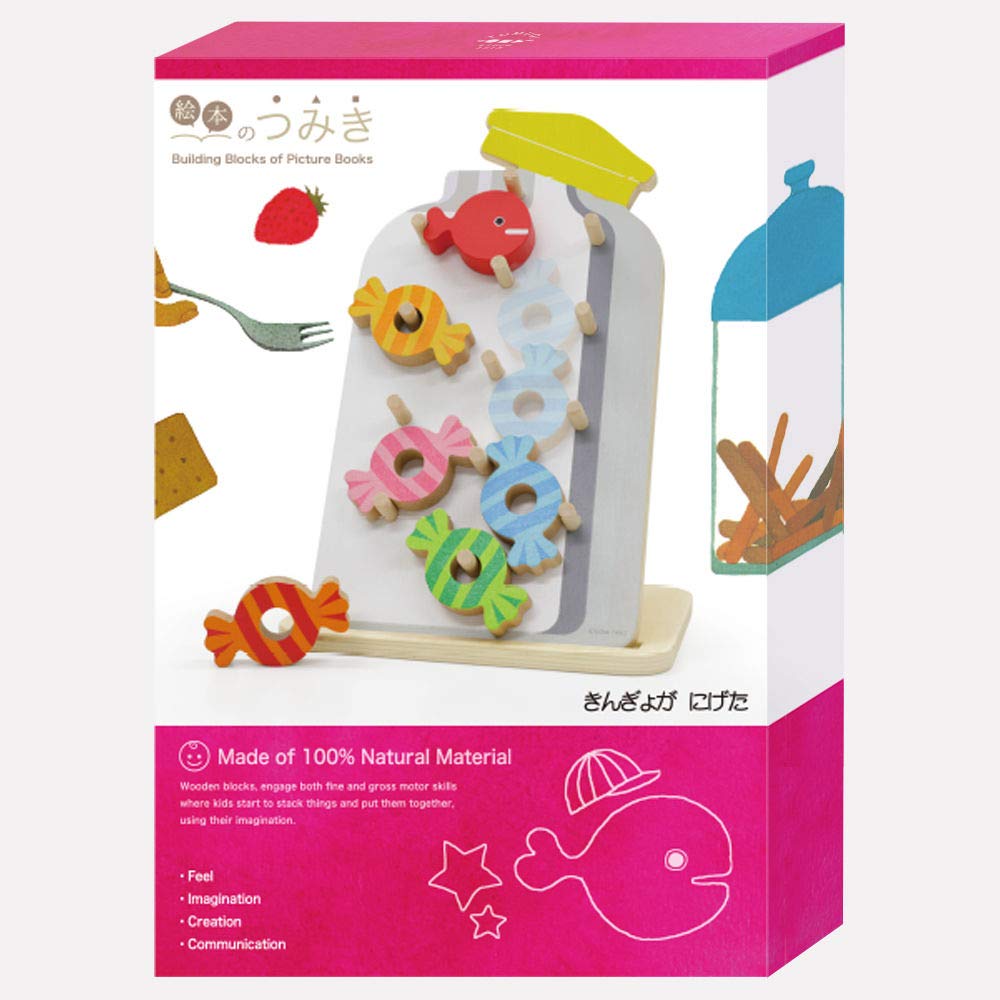 Play with your favorite picture books with "Picture Book Blocks" - The Goldfish That Ran Away series. Picture book characters have come to life as building blocks! By creating new stories with the main characters of picture books, you can expand the world of play and learning through building block play. By combining them with other building blocks in the series, the world of picture books will expand even further. You can also enjoy nostalgic picture book characters as interior decorations in your home. "Picture Book Blocks" are fun for both adults and children. ------------------ "Picture Book Blocks" are primarily made from natural beech wood. Due to the characteristics of natural wood, there will be individual differences in the color and pattern of the wood. To ensure children can play safely and enjoyably, the paints and dyes are CE certified under the European Standard (CE) safety standard and have been tested in accordance with the Food Sanitation Act to confirm their safety.