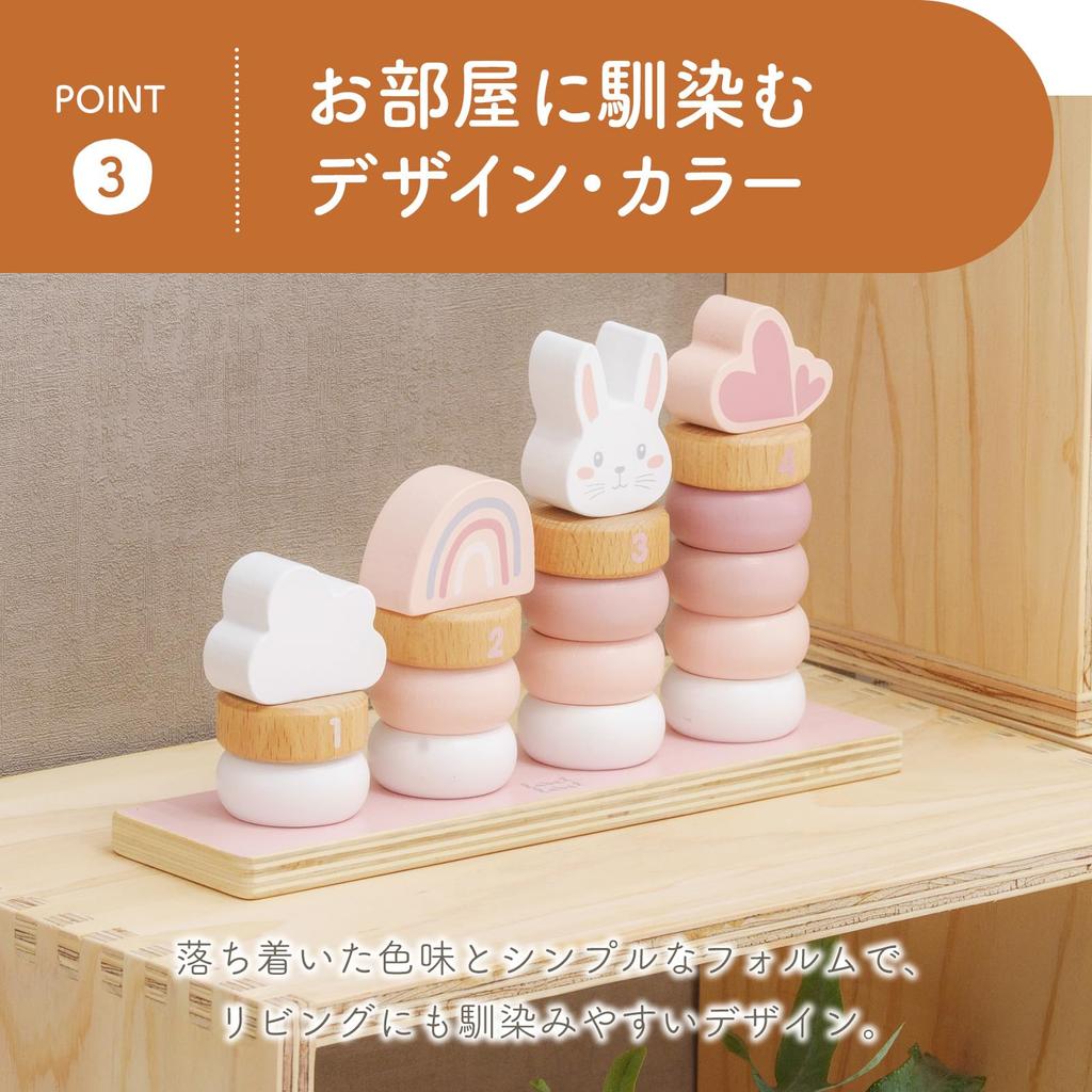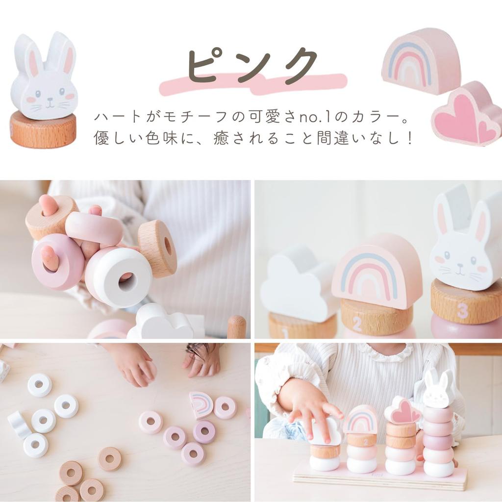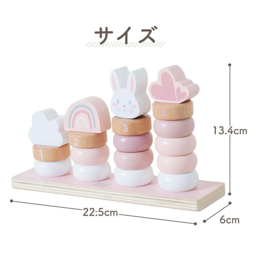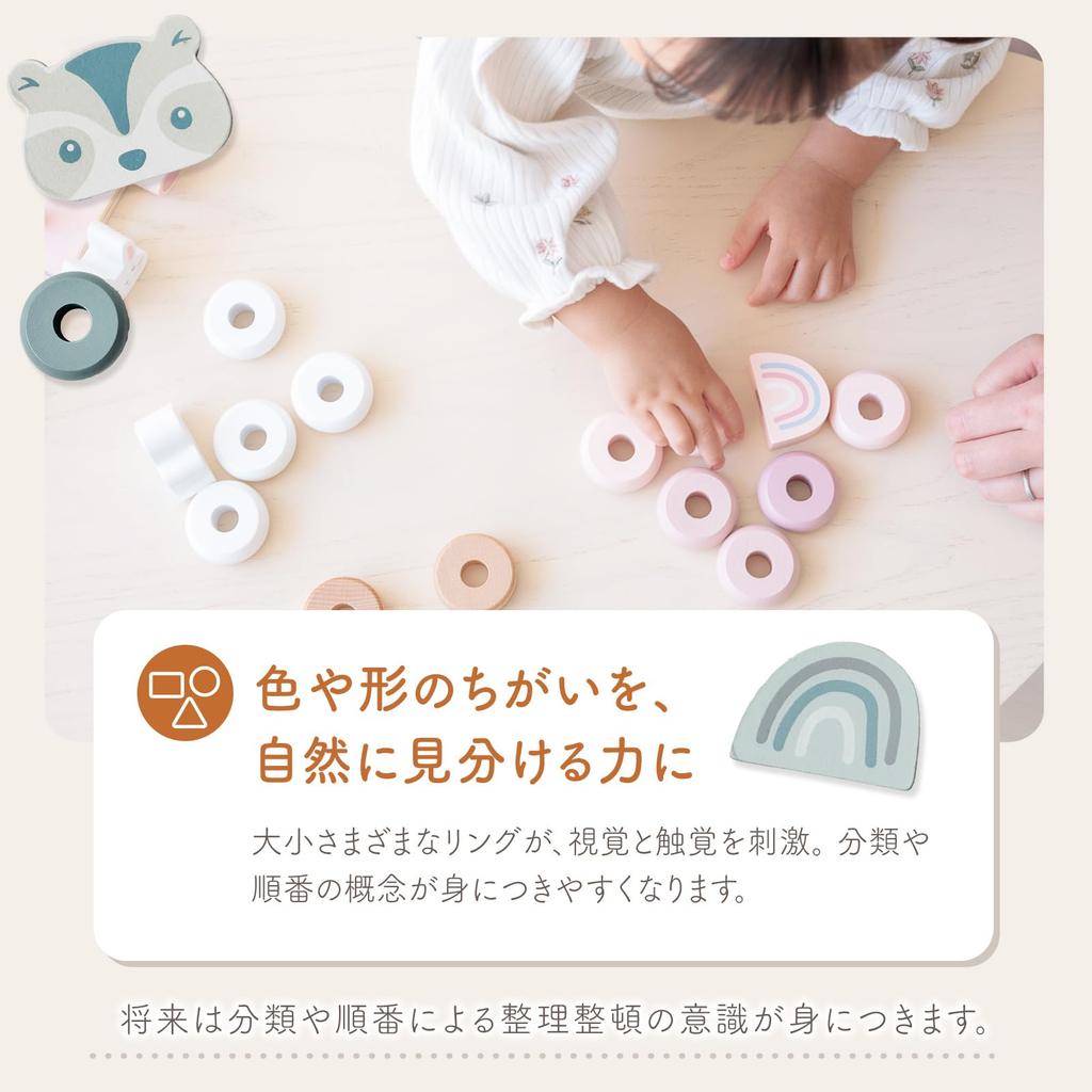 This stylish, muted-colored wooden stacking toy blends seamlessly into any room's decor. By threading the rings onto the sticks, children naturally develop dexterity and concentration, while also developing a sense of color, number, and quantity. Made with lick-safe paint and carefully rounded edges, it's a safe choice for a first toy. The cute design also doubles as building blocks and pretend play, expanding your child's imagination and ensuring long-lasting use. Combining design, educational value, and safety, it's the perfect gift for a baby shower or first birthday.