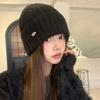 Синяя шерстяная шапка женская осенне-зимняя универсальная для лица маленькая вязаная шапка большой окружности головы зимняя теплая шапка с защитой ушей